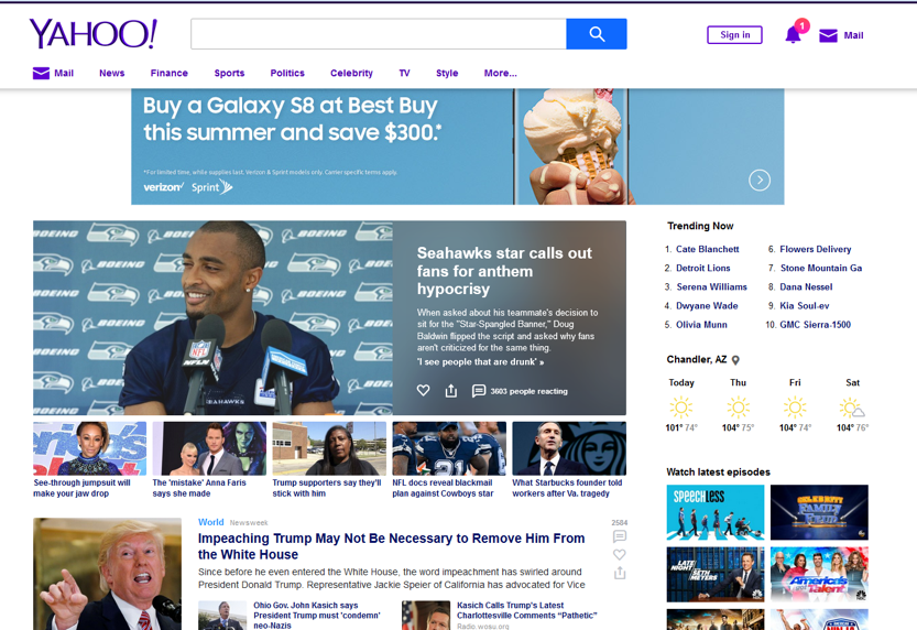For example, recently, Samsung Galaxy S8 had a nice banner on top of the yahoo.com home page featuring an ice cream cone. Innocent enough, right? However, when you glance down the page, the two top stories center around highly controversial and politically charged content.