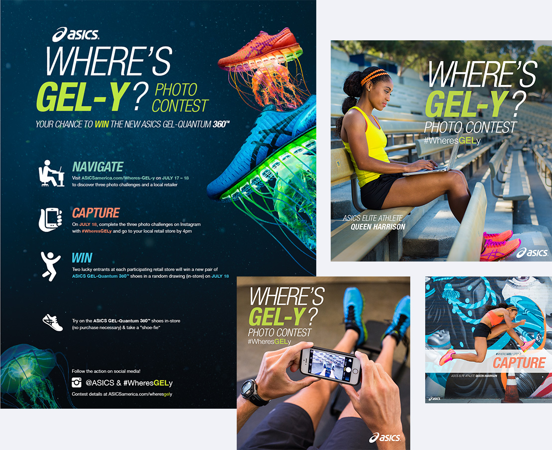 We hosted the Where's Gel-y? photo contest, sending users to participating local retailers to take part in a challenge for the chance to win a free pair of Gel Quantum 360s.