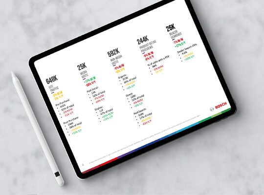As a trusted partner, we continually recommend optimizations and adjustments to the Bosch website in order to improve engagement. Part of this effort includes performing monthly SEO reports to show keyword rankings, best performing keywords, keywords that may not be performing well, and other metrics that will make Bosch stand out from the crowd.