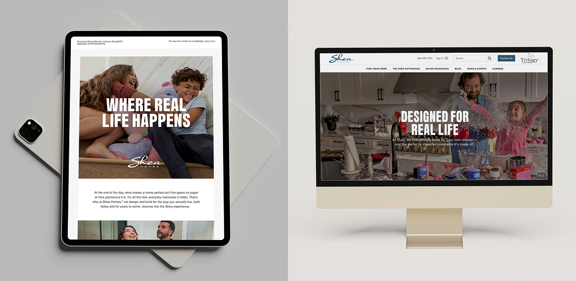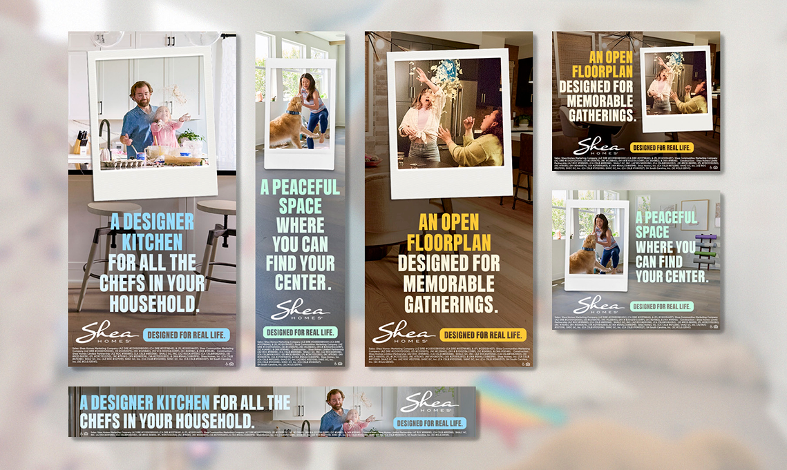 The "For Real Life" campaign concept moved Shea beyond marketing homes to celebrating the honest, joyful, and sometimes chaotic moments that make up everyday life. Rather than the staged perfection typical of the industry, we spotlighted authenticity, positioning Shea as the homebuilder that can adapt, support, and inspire the next chapter.