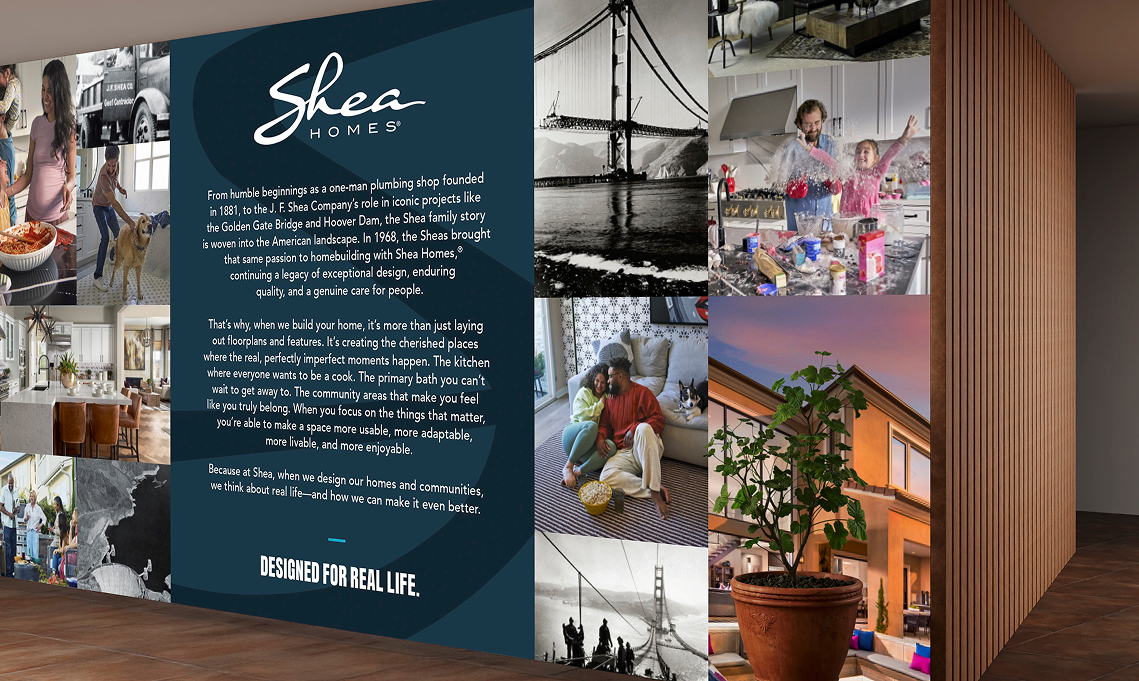 “For Real Life” centered around a 60-second anthem video that we took from concept to post-production, showcasing the authenticity and energy of real life inside a Shea home. We then expanded into a robust list of assets, including 15-second video vignettes, paid social and display ads, a campaign landing page, print, and sales materials.