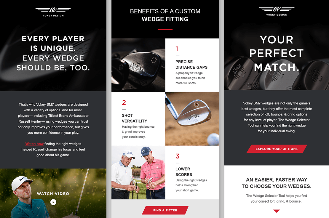 We provided the content strategy, copywriting, and design for a set of three emails, created as a series to promote Vokey’s Wedge Selector Tool and custom fitting opportunities.